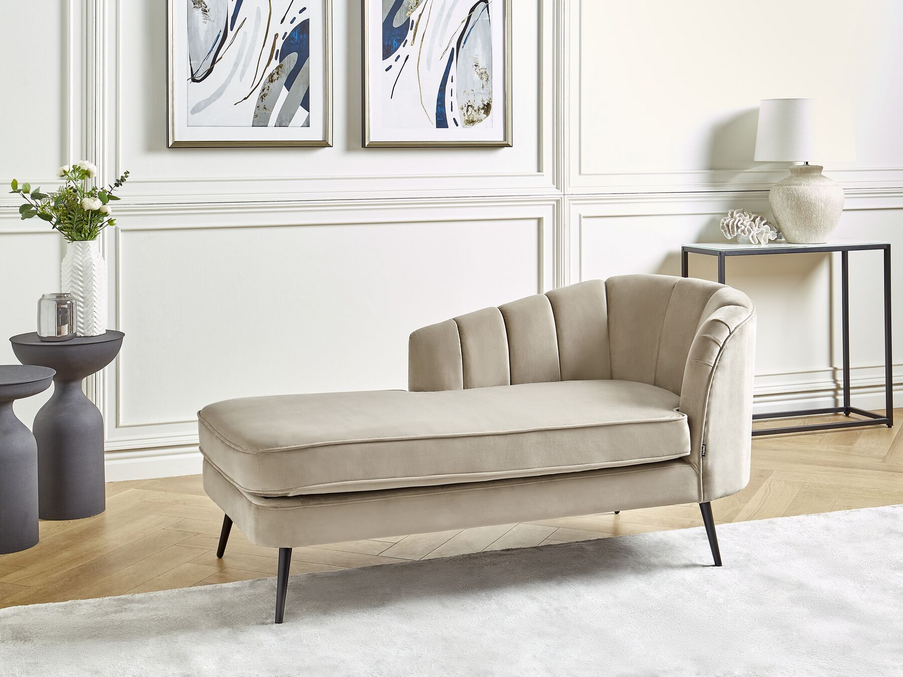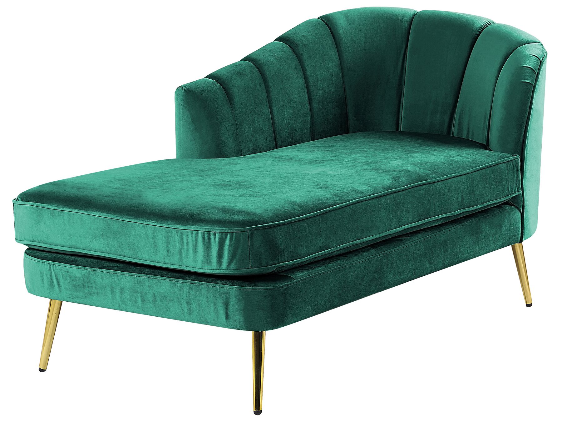 This stylish chaise lounge serves as a sophisticated enhancement to any living room or bedroom. The deep-colored velvet upholstery combined with gold metal legs results in a luxurious item that will enhance its environment. This piece boasts a sturdy frame and plush, thick padding that ensures optimal seating comfort. Position it in the living room or office to add a touch of glamour to the space.