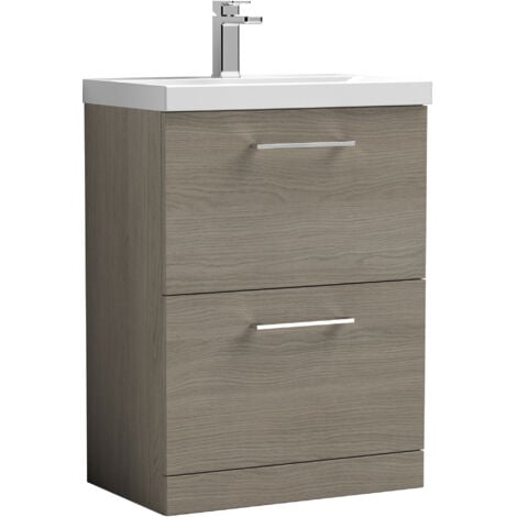 Introducing the Arno floor-mounted vanity cabinet, a stylish and practical alternative to traditional pedestal sinks. This elegant unit features two soft-closing drawers, providing ample storage space for all your toiletries while maintaining a streamlined appearance. What sets the Arno apart is its customizability, you can choose from four on-trend woodgrain finishes to match your bathroom’s aesthetic, along with four distinct ceramic basin options, each offering a unique look and feel. Elevate your bathroom design with the versatile and sophisticated Arno vanity cabinet, designed to meet both functional and stylistic needs.