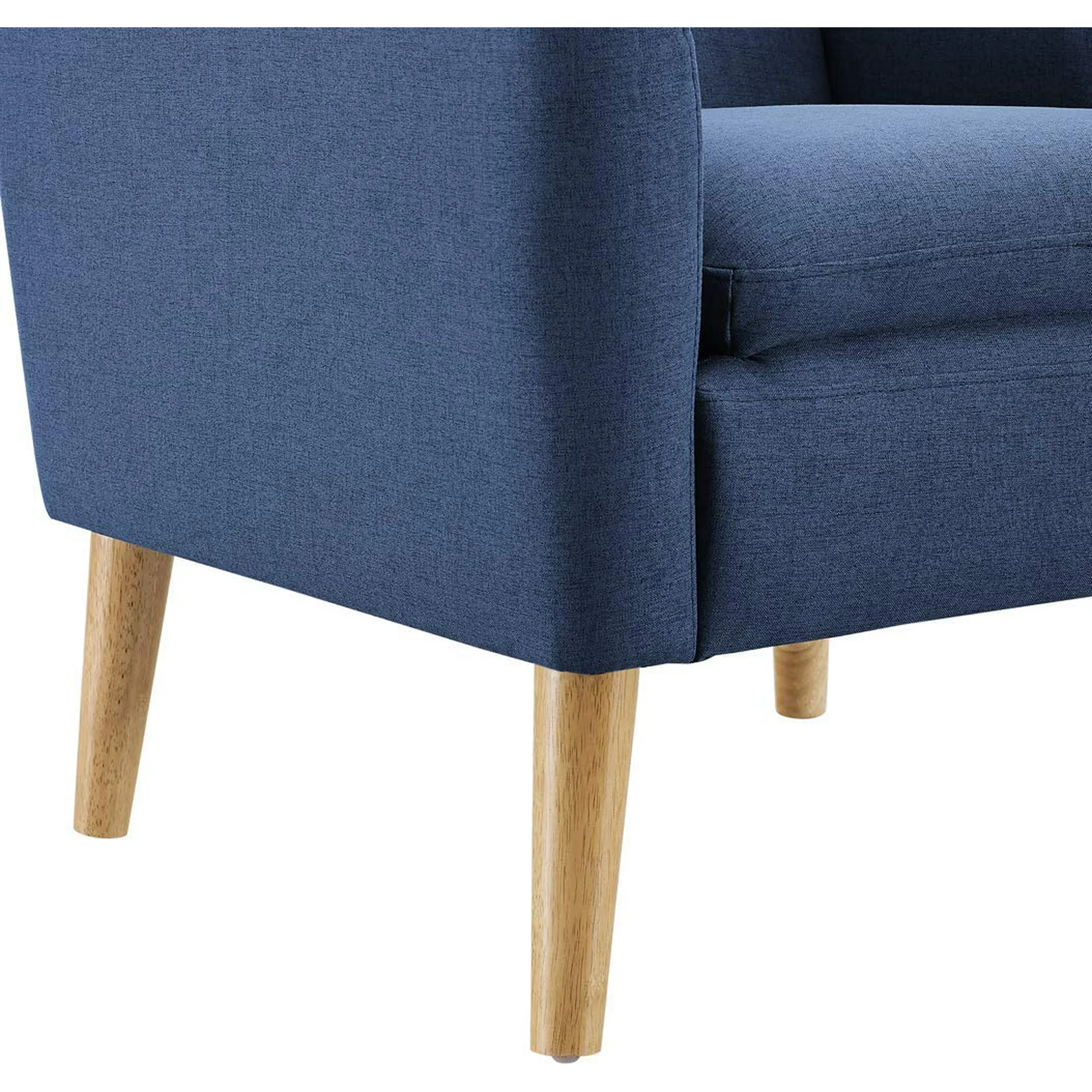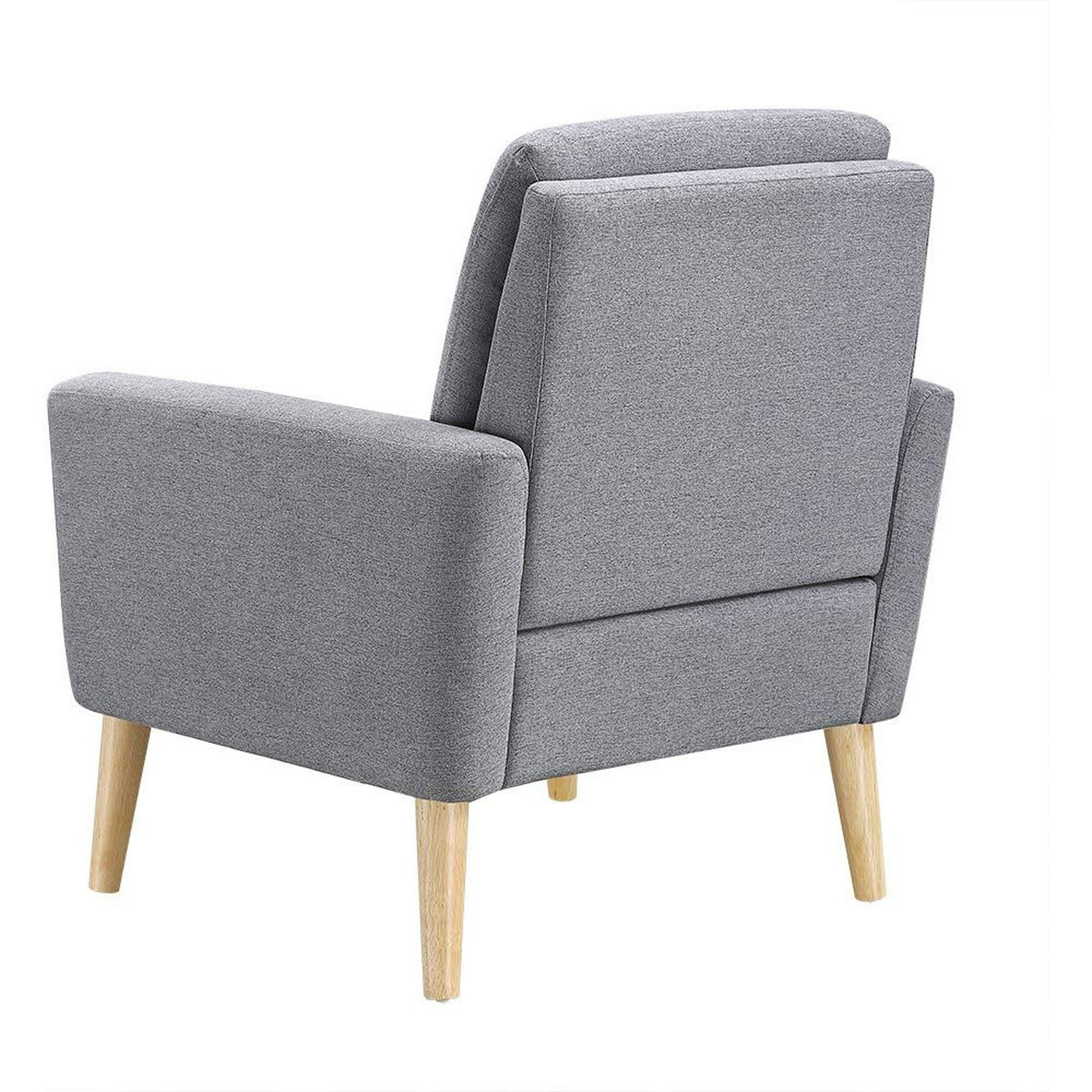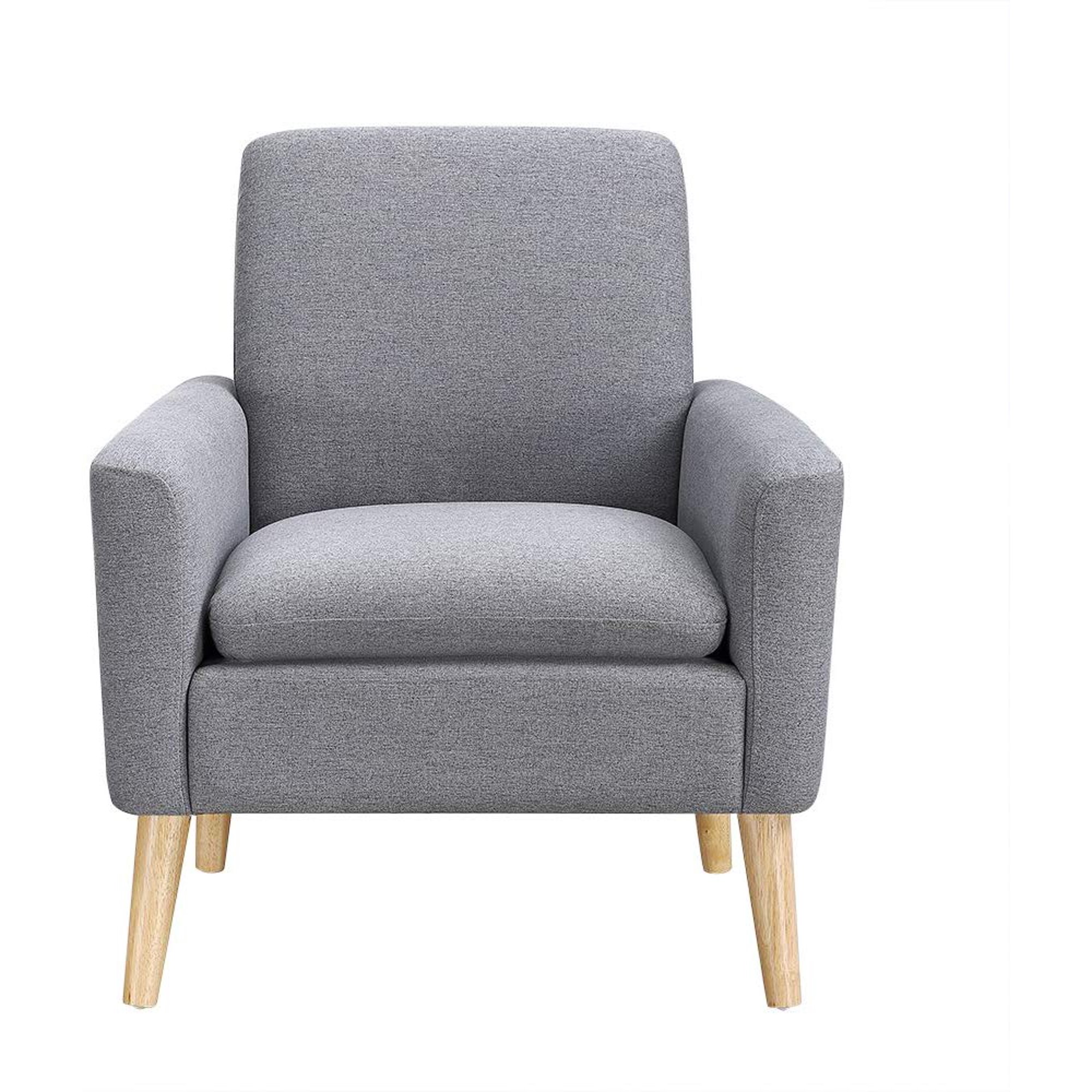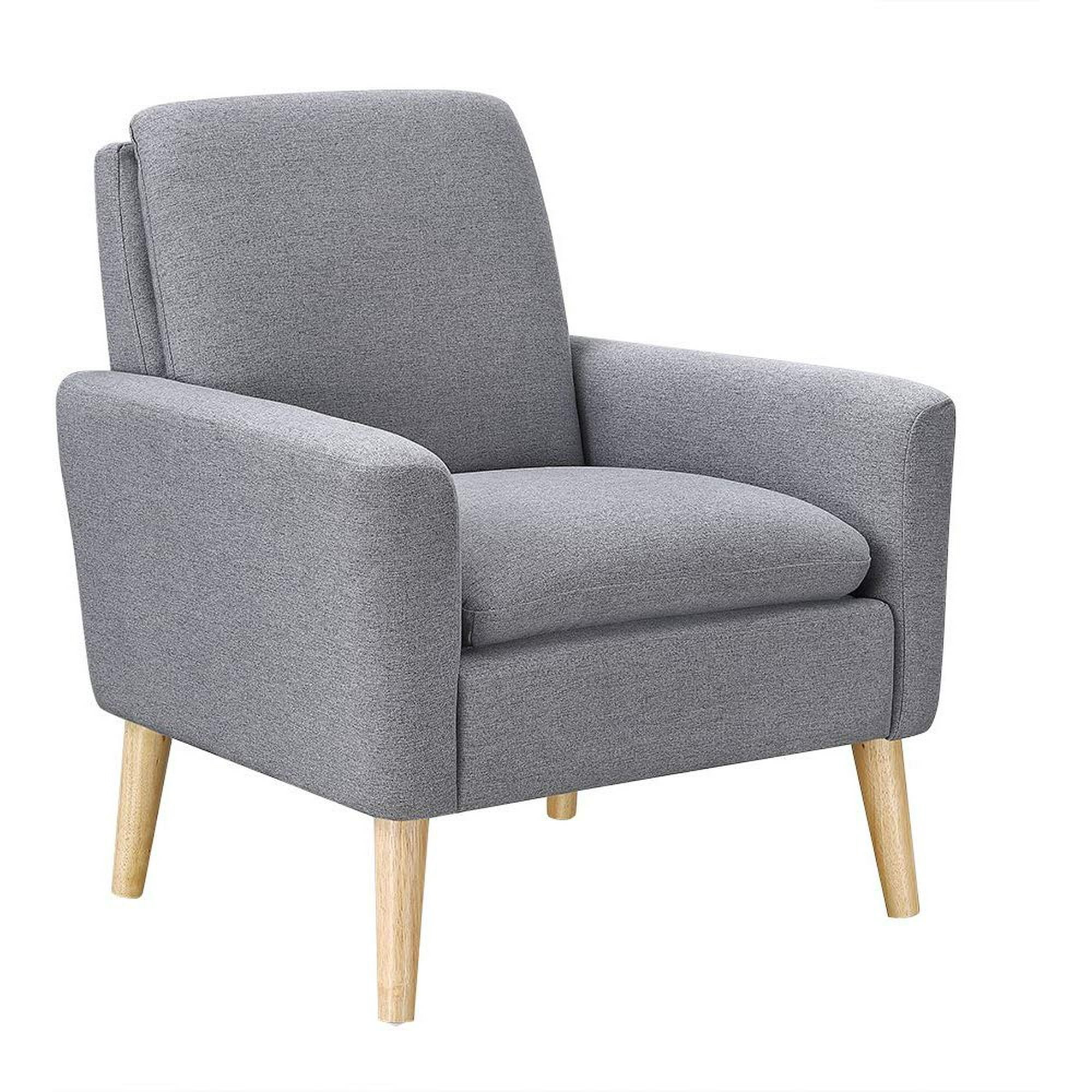 Stylish and comfortable, this Modern Design Arm Chair will make a perfect fit for the living room, bedroom, or office and suit any type of decoration. Ergonomically designed, deep, and soft upholstered seats provide comfort. The back support is ergonomic, and the seat cushion is made with soft sponge for added comfort. A strong solid wood frame, soft sponge, and linen fabric make this chair superbly durable.