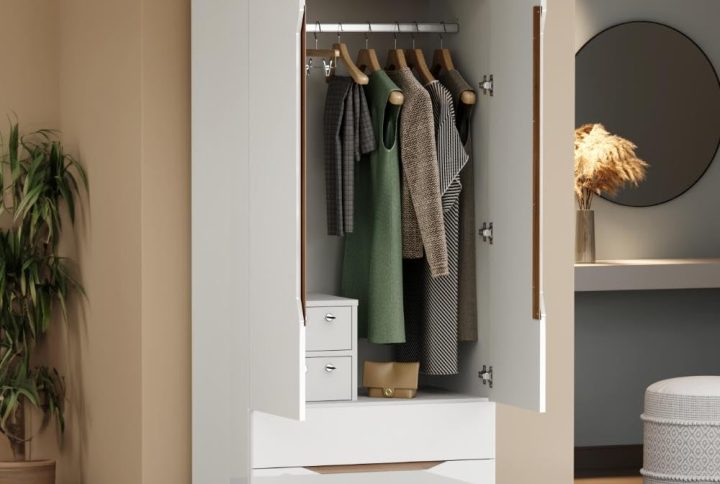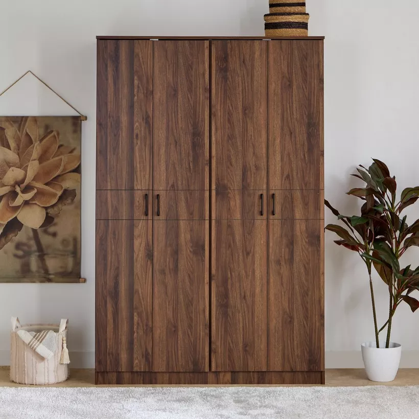 With four doors that open to present ample space to store belongings in an orderly fashion, this wardrobe is crafted to perfection. Giving an impression of sturdiness, this one finds a perfect place in your master bedroom with its foil veneer finish with a rich appeal. Suitable for clothes and accessories, it is affirmed to be a good choice for end, made from engineered wood.