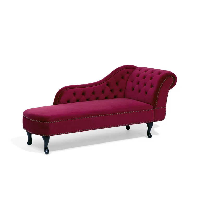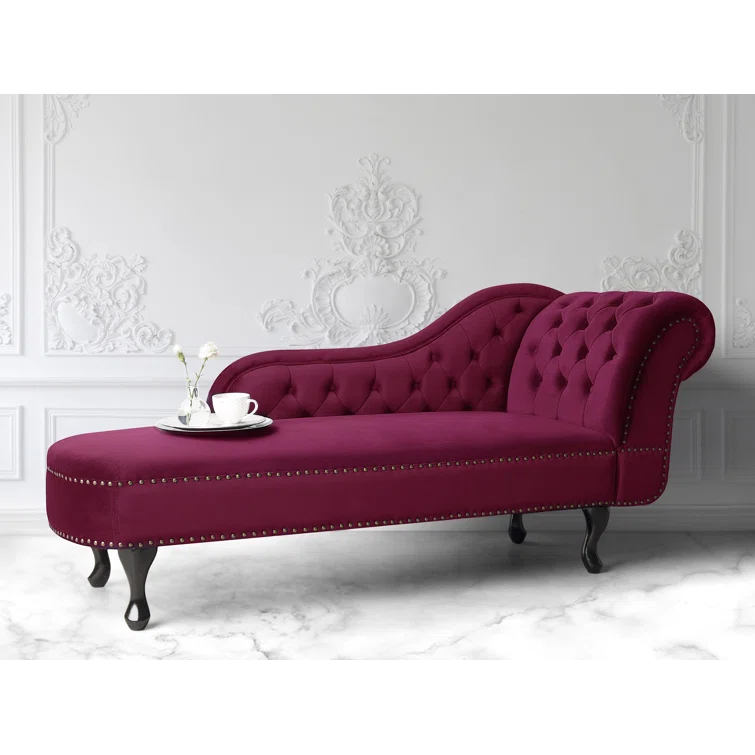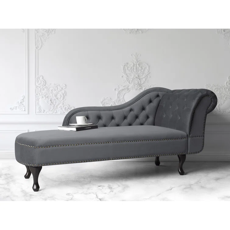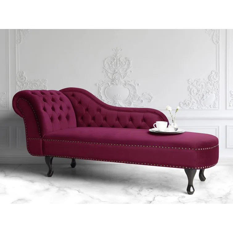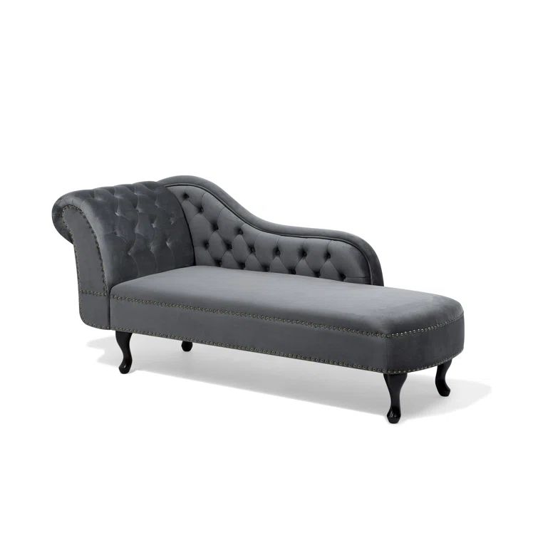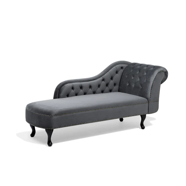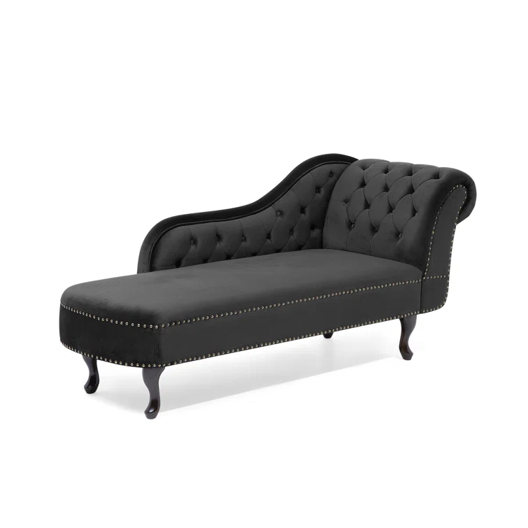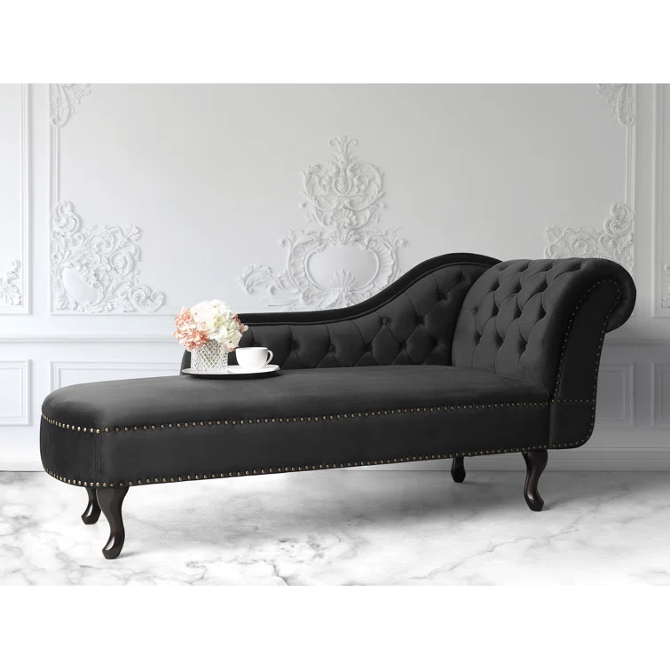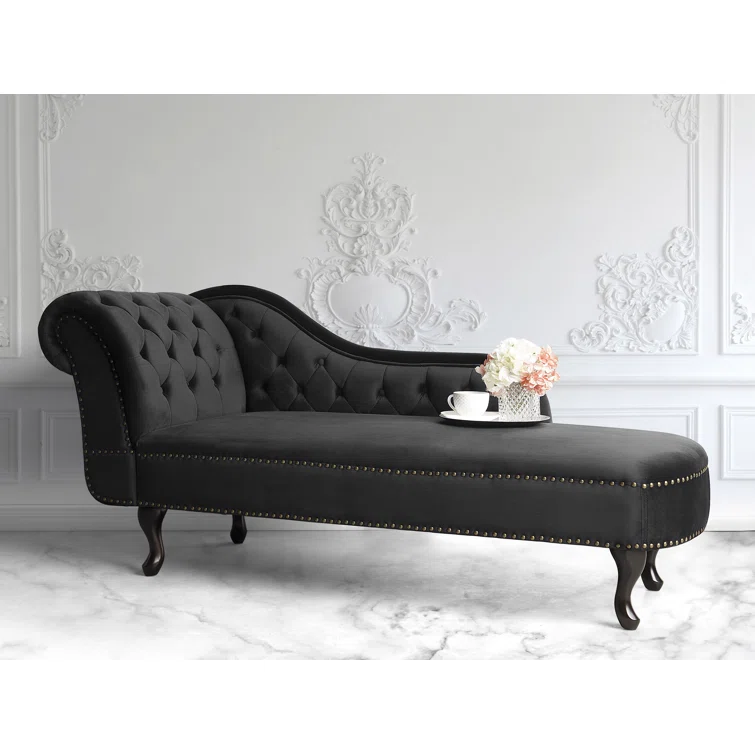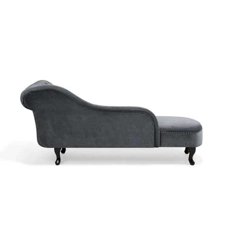 Introducing the Jecab Velvet chaise lounge, a sophisticated addition to any interior space, particularly perfect for living rooms and hallways. Crafted from plush velvet upholstery, this piece not only offers a comfortable seating option but also a tactile experience that delights. The chaise lounge is elegantly adorned with tufted buttons and nailhead trim, enhancing its luxurious appeal. Constructed from a blend of engineered wood and hardwood, both the frame and legs are built to provide exceptional durability, ensuring stability and longevity for years to come. Elevate your home decor with this stunning chaise lounge that seamlessly combines style and substance.