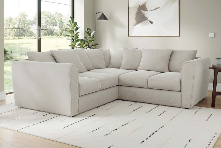 The Napa Sectional Sofa with Chaise represents a luxurious addition to Living Room Furniture, showcasing textured fabric, an elegant design, a comfortable divan featuring black cushioning, and stylish accent pillows.. This soft Sectional Sofa boasts clean lines and resembles a fainting couch with a vintage Ottoman flair. Its immense versatility makes it ideal for coffee table seating, complemented by tapered wood legs that serve as a footrest, perfectly matching a Living Room adorned with a Stone Accent Wall.