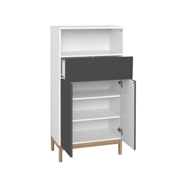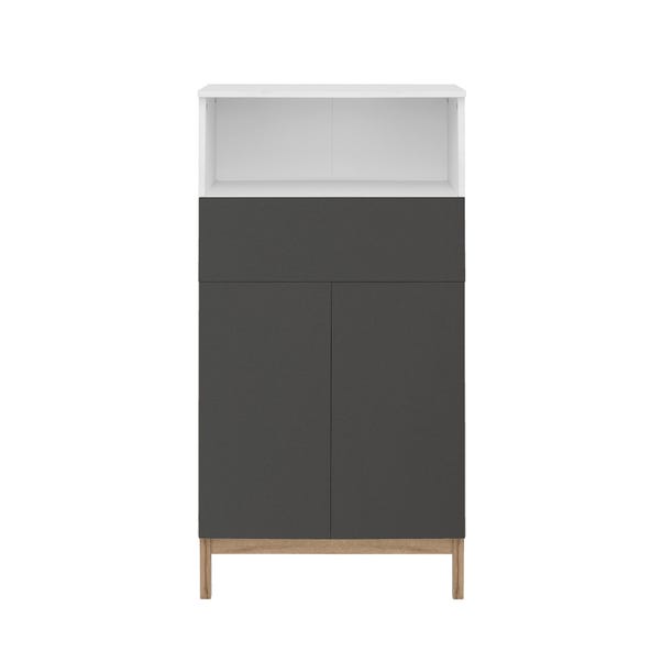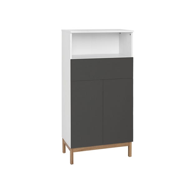 Introducing a beautifully designed bathroom storage unit that seamlessly blends functionality with contemporary elegance. This versatile piece features an open shelf for easy access, complemented by two spacious drawers and two push-to-open doors, revealing three additional shelves perfect for organizing your essentials. Constructed with easy-to-clean surfaces and a robust design, this unit ensures longevity while enhancing the aesthetic of your space. The adjustable door hinges offer flexible assembly options, allowing it to fit perfectly within your bathroom’s unique layout. Transform your storage experience with this sophisticated solution.