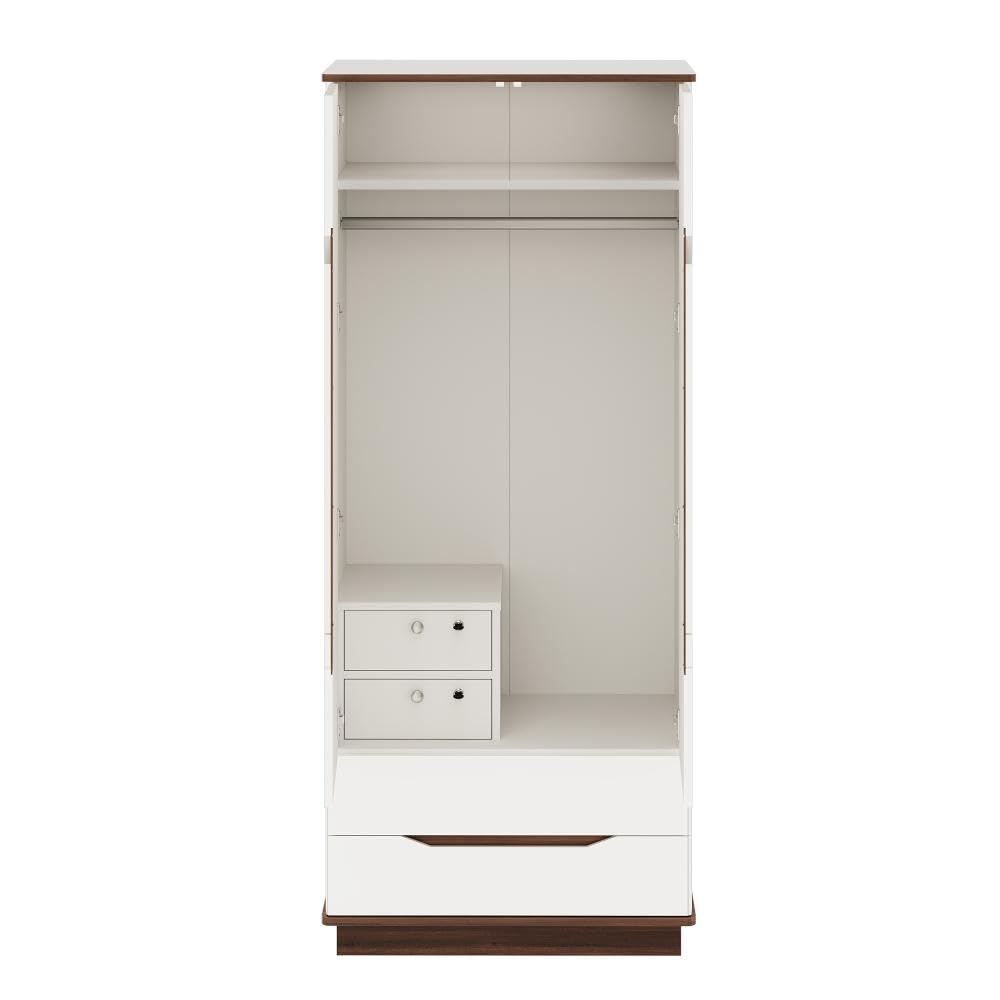 Made under an ambiance of calmness, the Wakefit 2-Door Wardrobe will lend tremendous help to the budding aesthetic of your bedroom. The wardrobe is provided with a top shelf and clothing rod, small concealed drawers, and two large drawers at the bottom for keeping your clothes, accessories, and various other items.